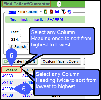 - Select the Patient column heading to sort and confirm the highest and lowest Patient ID numbers.