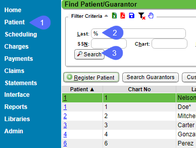 View Patients Data from the Find Patient/Guarantor Dashboard