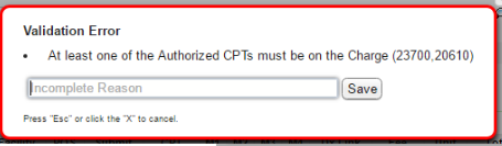 - In the CPT field, enter the CPTs that need to be on the encounter separated by commas and no spaces. Example: 99214,99215,99216