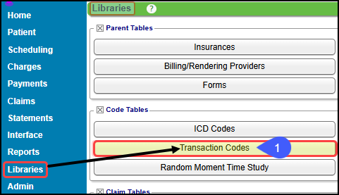 From Libraries on the Left Side Menu, select the Transaction Codes button.