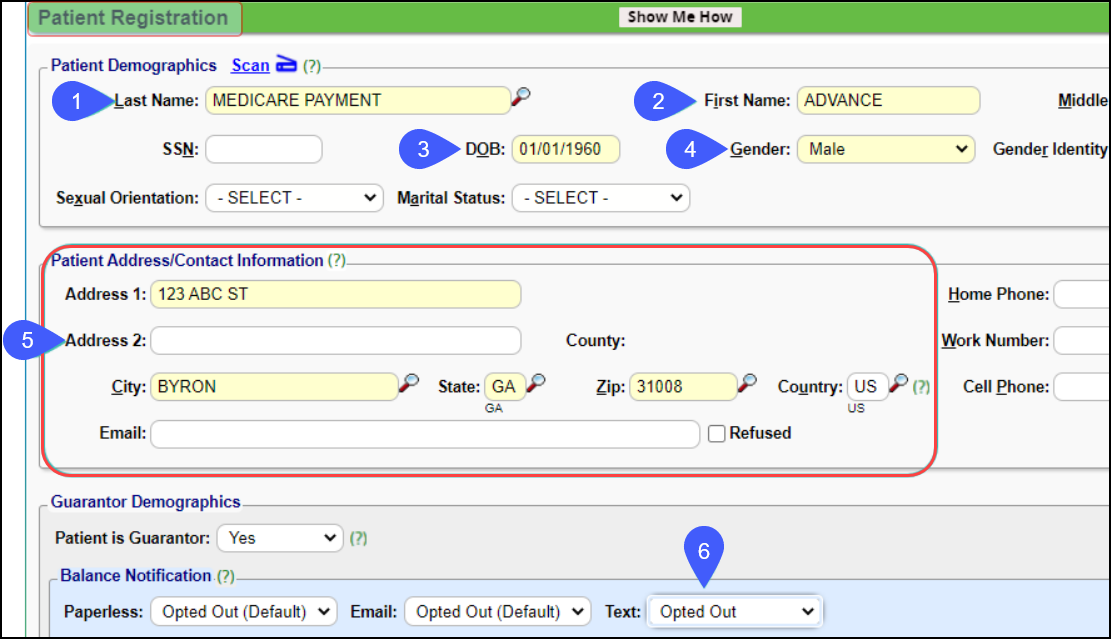 Example: First Name = Advance; Last Name = Medicare Payment.