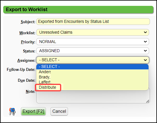 For Distribute to be available in the Assignee dropdown, All cannot be used.