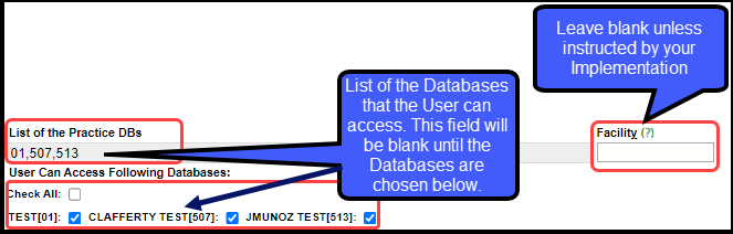 - This grants or restricts access to Patients and reporting data based on the Facility that the User has access to.