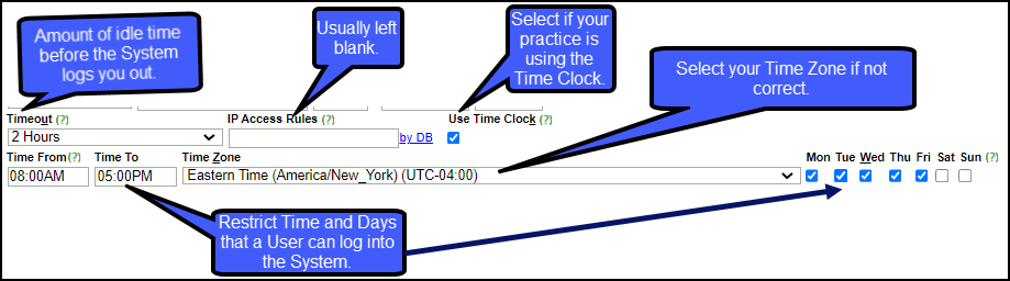- This can be left with all days of the week checked if you do not wish to restrict the User.