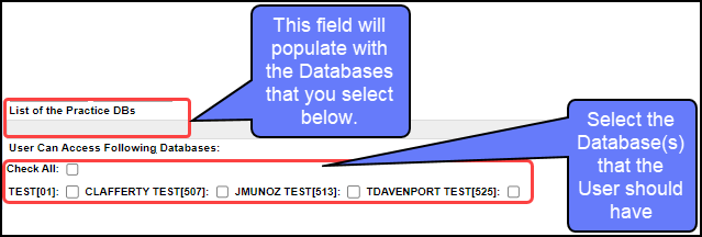 - This will populate with the Databases that are chosen below under User Can Access Following Databases.