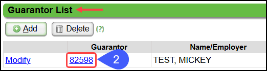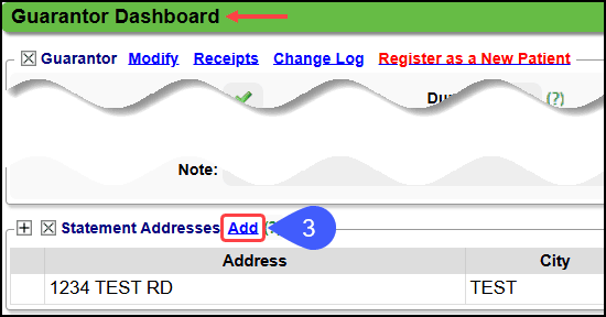 Update an Existing Guarantor On the Patient Dashboard, select the Guarantor's Name. Select Modify. Make modifications. Select Save [F2]. If the default Guarantor's address was changed, you will be prompted with the option to change the patients' ...