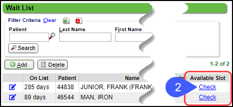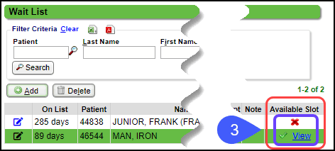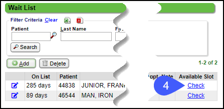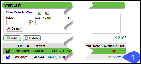 - If the Wait List criteria is changed, the green check mark and view link may still be displayed, when actually, there are no available appointments.
