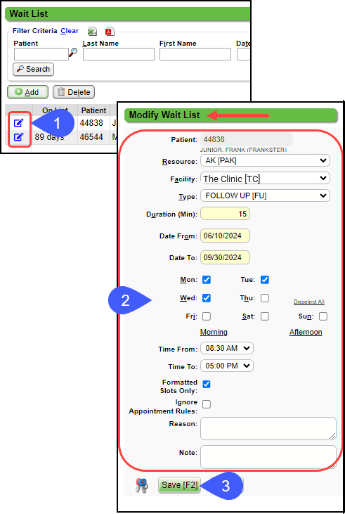- If the Date goes past the To date, the Patient will be removed from the Wait List automatically.