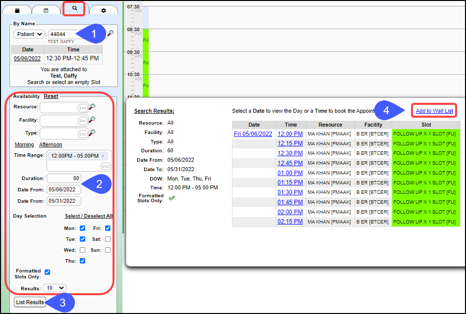 - Add a Patient to a Wait List while making an Appointment.