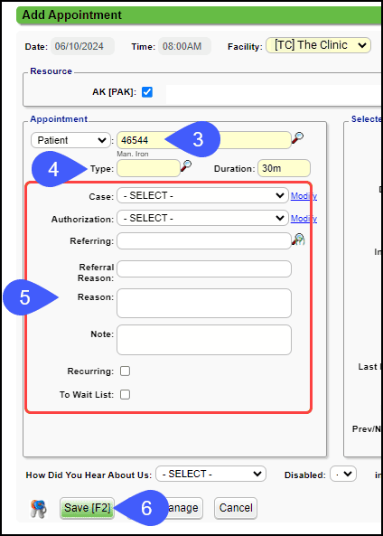 - Add as many details as needed for the Patient's Appointment.