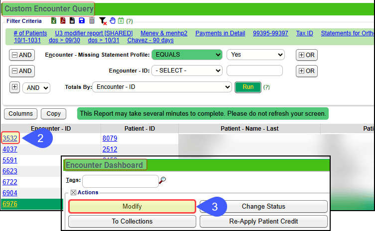 Modify the Statement Profile for Multiple Encounters on a Patient in One Step
