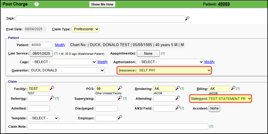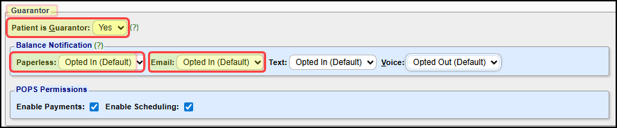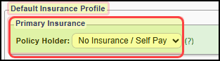- In the Default Insurance Profile, set the Policy Holder to No Insurance/Self Pay for Primary Insurance.