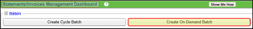 - On the Statements Management Dashboard, select the Create On-Demand Batch button.