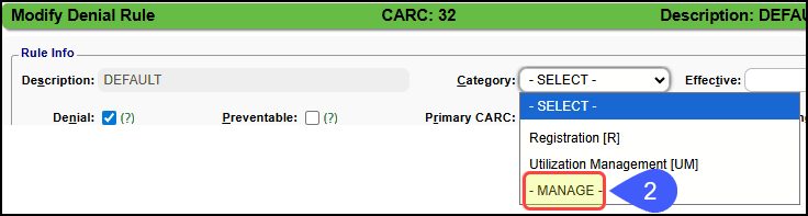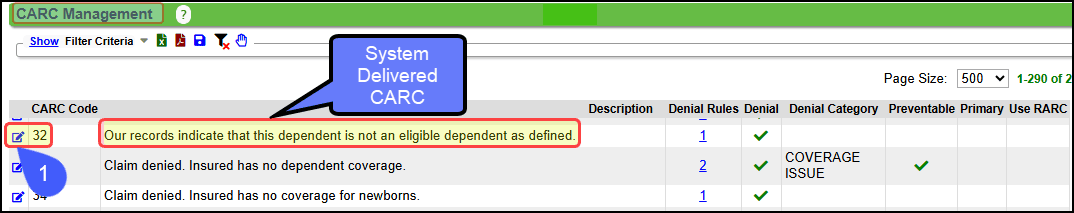 - Primary CARC: Check to report this CARC as a Primary Denial code.
