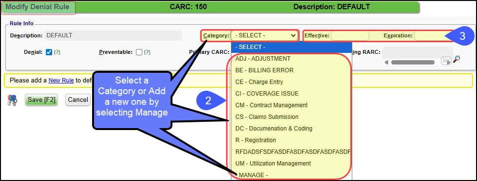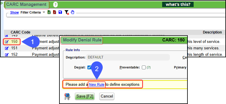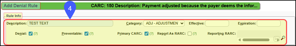 - If the CARC and the RARC that is entered here are on the remit, the RARC will be reported as a denial.