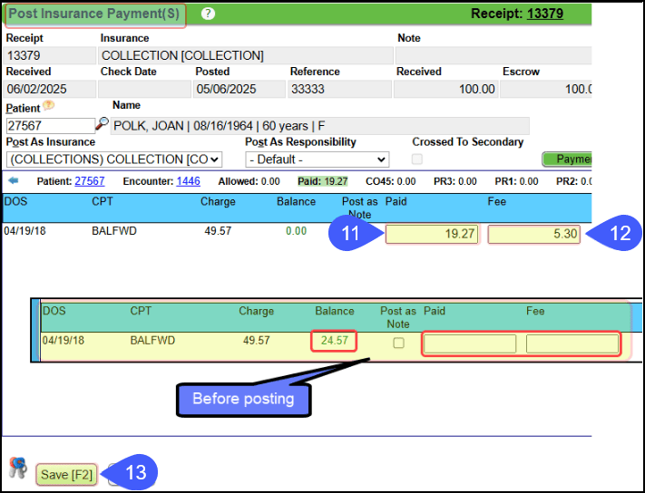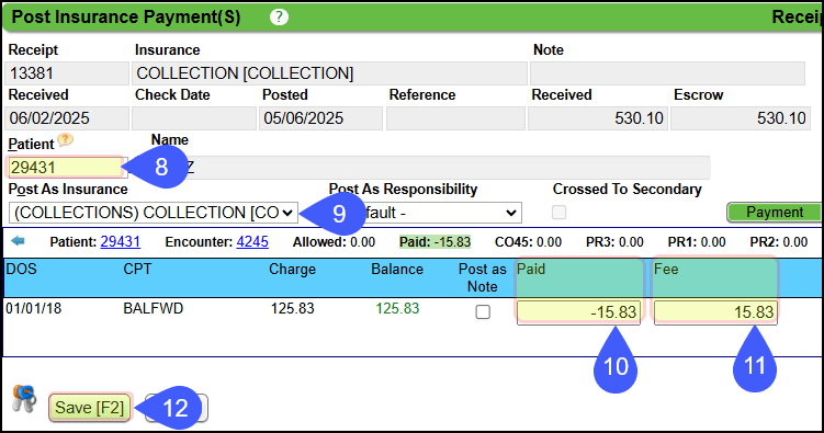 • Continue until all additional fees are posted for Collection Payments received and posted in-office.