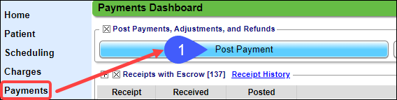1. From Payments on the Left Side Menu, choose Post Payment.