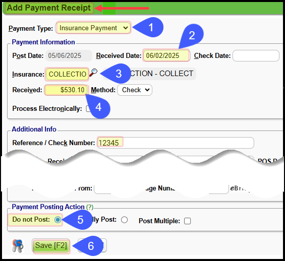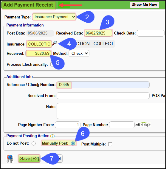 1. Payment Type: Select Insurance Payment.