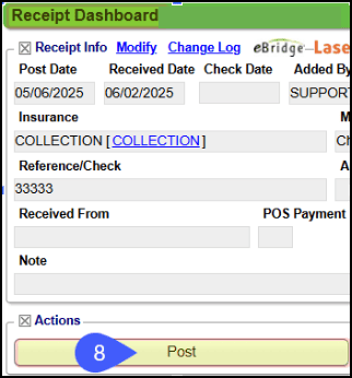 1. On the Receipt Dashboard, select the Post button.