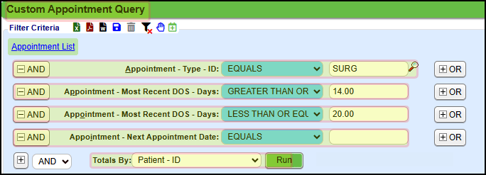 - Appointment - Most Recent DOS - Days: GREATER THAN OR EQUAL TO 14