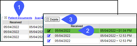 The Patient Documents Panel shows all documents that have been uploaded or scanned (such as Insurance cards and driver's licenses). Patient Documents Link Select the Patient Documents link to open a list of scanned on the Documents/Images screen. ...