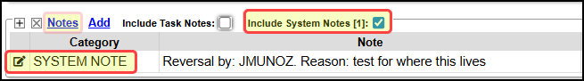 Include System Notes: Select the checkbox to view notes on this Encounter created by the System.