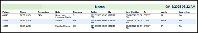 Patient Notes can also be printed using the Custom Patient Query Report for a specific Patient for specific dates.