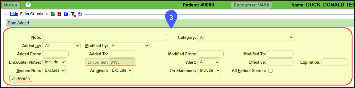 System Note: Select Include or Only to see System generated Notes for this Encounter.
