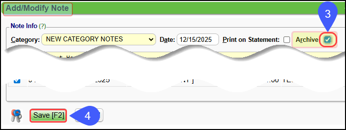 Archived: Select Include or Only to see Archived Notes on this Encounter.