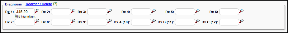 - Select the Lookup icon to search for the Diagnosis Codes or enter the Diagnosis Codes in the Dx fields. GEMS (ICD9) equivalency lookup.
