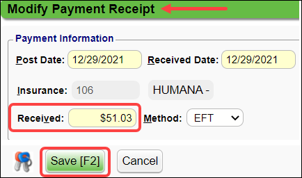 Example: The ERA actually paid $51.03 but a Receipt was generated for $175.21.