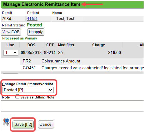 When finished make sure the ERA Remit Status is marked as Posted.