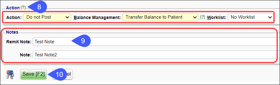 - Post as Remitted: Posts the Transactions as Remitted. This has the same options as Do not Post and Post as Note: Balance Management and Worklist.