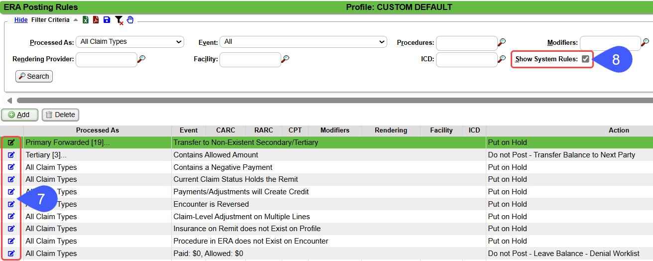 - Note: If you have other ERA Rule Sets linked to specific Payers, review those Rule Sets to determine if you need to add a new Rule for the System Rules that are being changed.