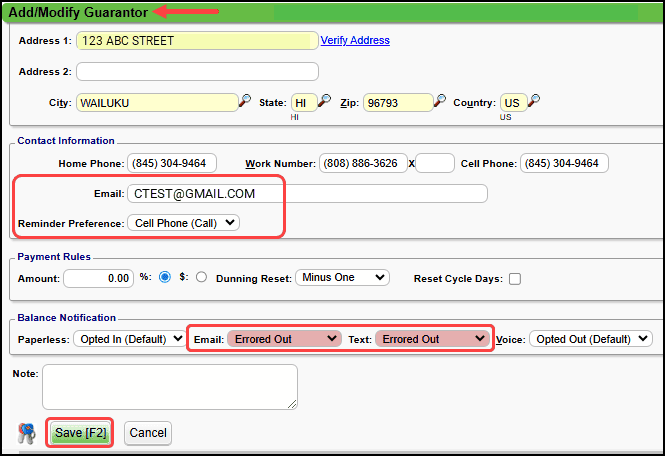 - Message: Could not send notification due to Contact information for Guarantor. They will be sent a paper statement.