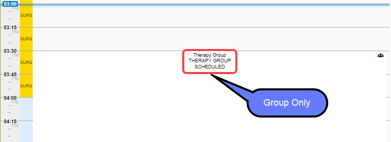 Group Only | Group appointments will only show the master appointment created with all individual appointments for members. |