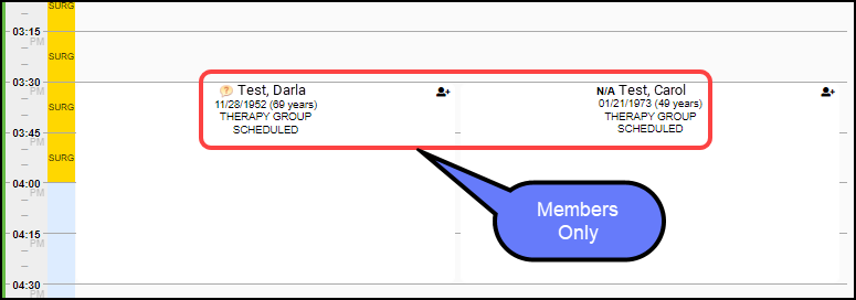 Members Only | Group appointments will only show the individual group member appointments created by the master appointment. |