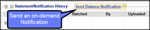 - By (Notifications Only): The User who batched the Statements/Invoices