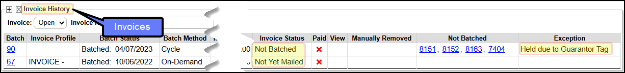 - Exceptions: Reason why the Encounter(s) was not batched.