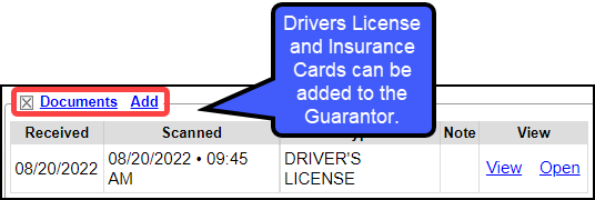 Drivers License and Insurance can be scanned on the Guarantor Dashboard as well as the Patient Dashboard.