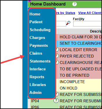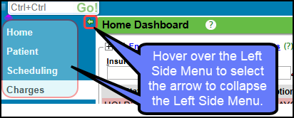Hide the Left Side Menu To hide the left side Navigation panel, select the green arrow above the Display Profile. To display after hiding, hover over the left side of the Scheduling Screen. To make the menu display all the time, hover over the left ...