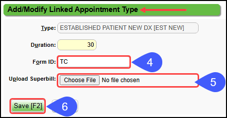 Link the Appointment Types to a Superbill (Encounter Form, Fee Ticket)