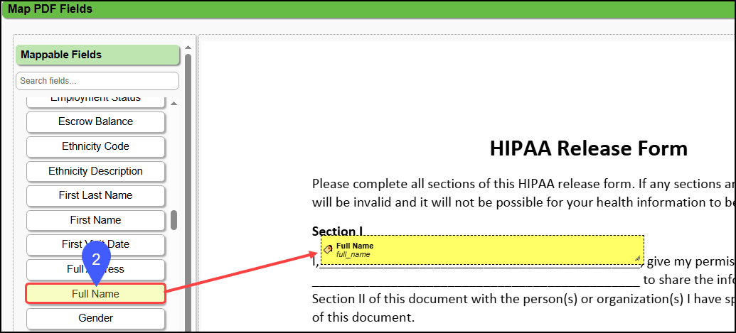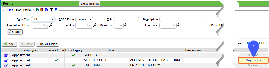 - Once mapped, information such as Patient Demographics, Appointment details, and Provider information will auto-populate onto the Form when printed.