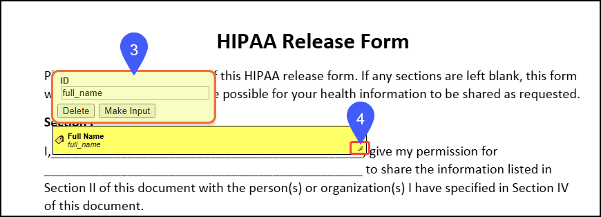 - To resize the field, drag the bottom-right corner of the yellow box.