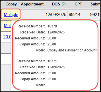 The Copay column will display as Multiple.