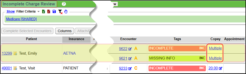 Incomplete Charges with Multiple Copays