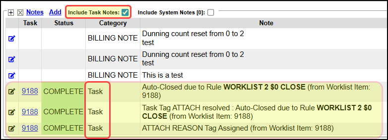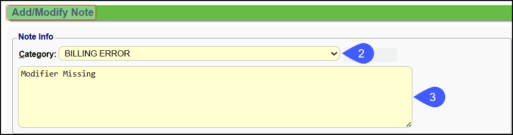 Category: Select a specific Category, such as Billing Note.