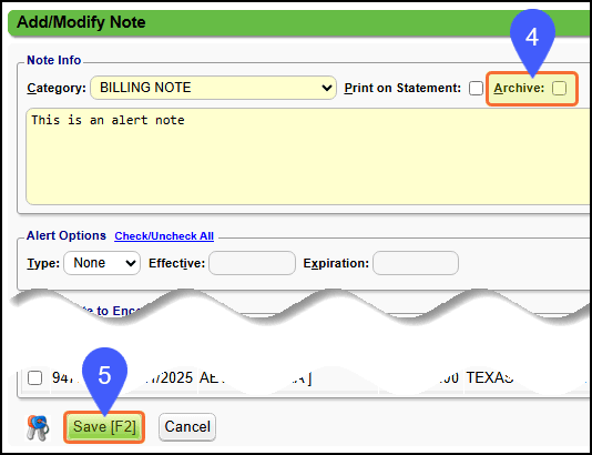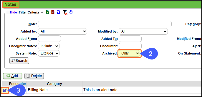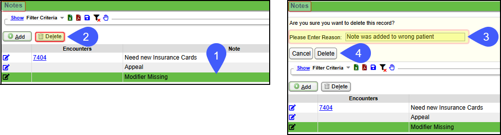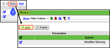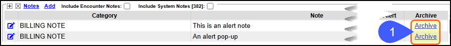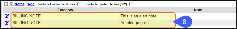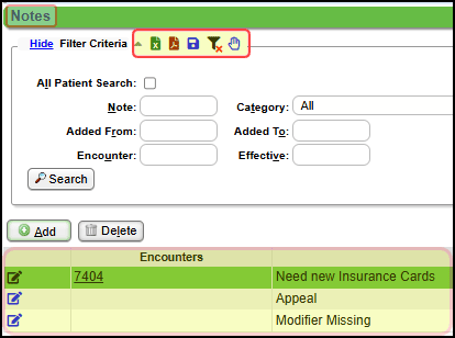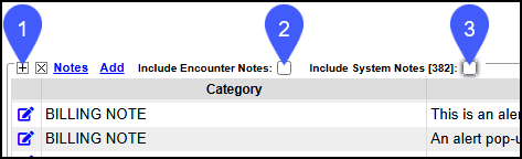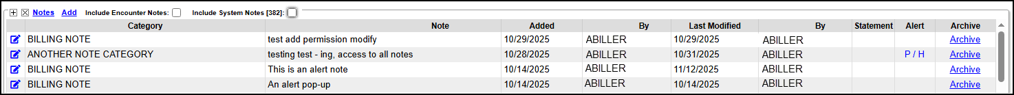 Users can manually add Notes on the Patient Dashboard, and some Notes that are added in other areas in the System can also be seen here. The System also creates Notes when certain actions are performed.