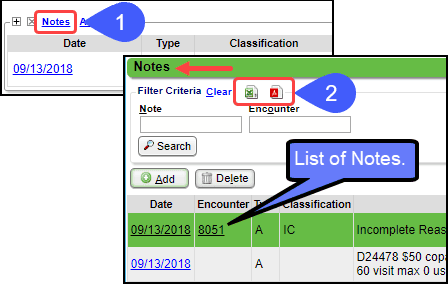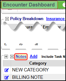 Select the Notes link in the Notes panel on the Encounter Dashboard.