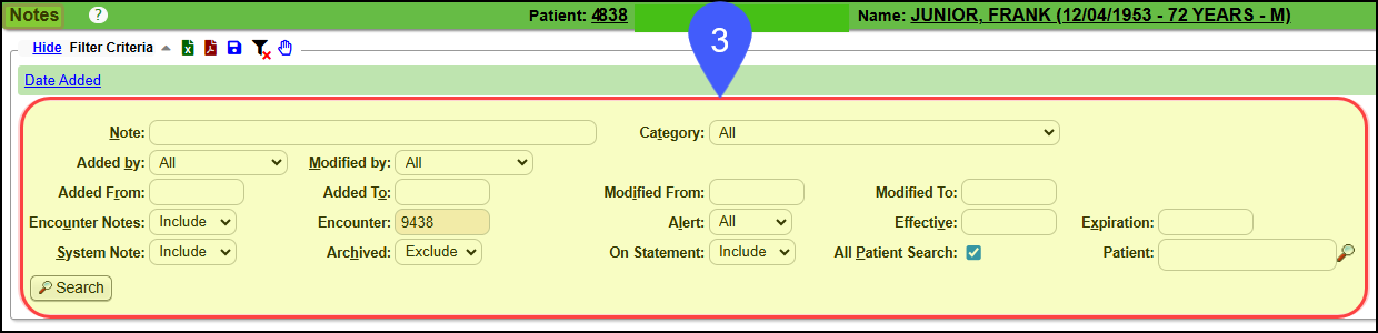 System Note: Select Include or Only to see System generated Notes for this Encounter.